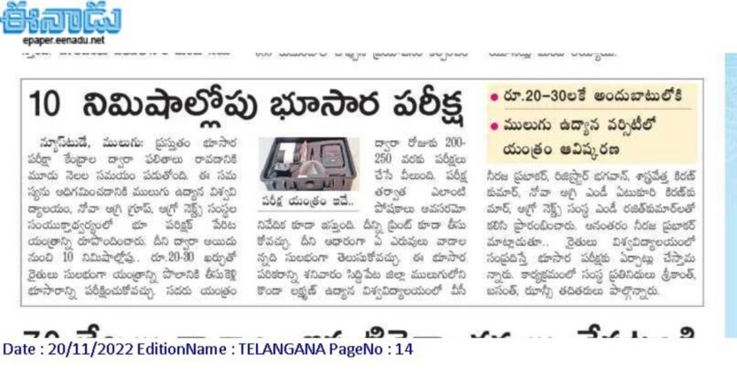 News & Media Coverage ➜ SEBI Approval for IPO ➜ Bhuparikshak ➜ Agribot Drones ➜ EYE CAMP ➜ HR Awards 2022 ➜ Agri Awards 2022 ➜ MOU WITH SKLTHU News & Media Coverage SEBI Approval for IPO View Gallery >> Bhuparikshak View Gallery >> Agribot Drones View Gallery >> EYE CAMP WITH YELURI CHARITABLE TRUST View Gallery >> HR Awards 2022 View Gallery >> Agri Awards 2022 View Gallery >> MOU WITH SKLTHU View Gallery >>