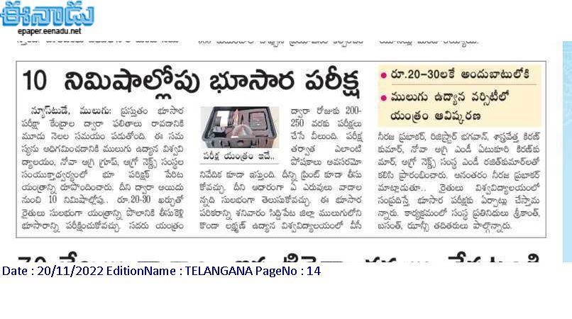 News & Media Coverage ➜ SEBI Approval for IPO ➜ Bhuparikshak ➜ Agribot Drones ➜ EYE CAMP ➜ HR Awards 2022 ➜ Agri Awards 2022 ➜ MOU WITH SKLTHU News & Media Coverage Bhuparikshak News Articles