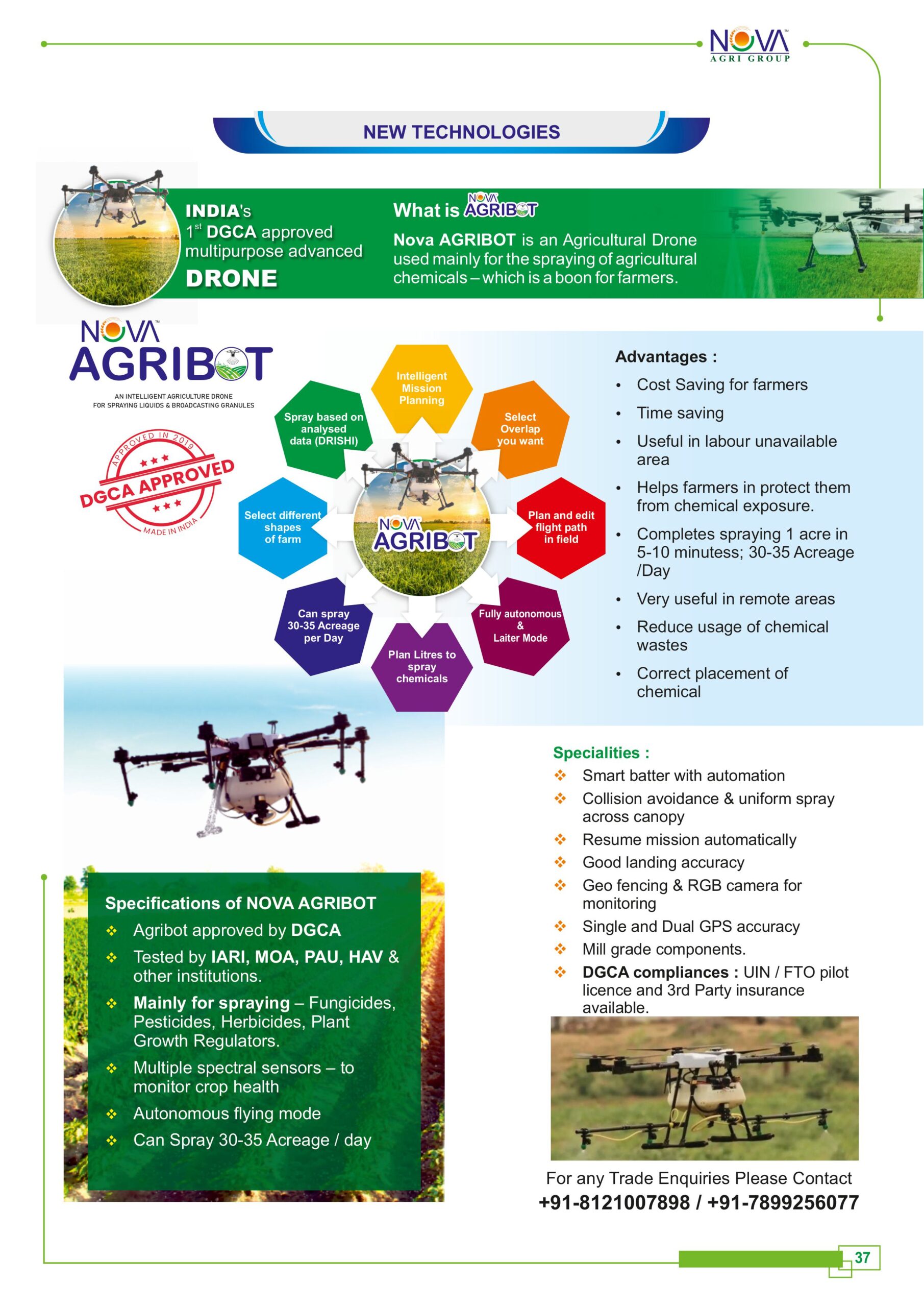 Nova AGRIBOT is an Agricultural Drone used mainly for the spraying of agricultural chemicals, which is a boon for farmers.